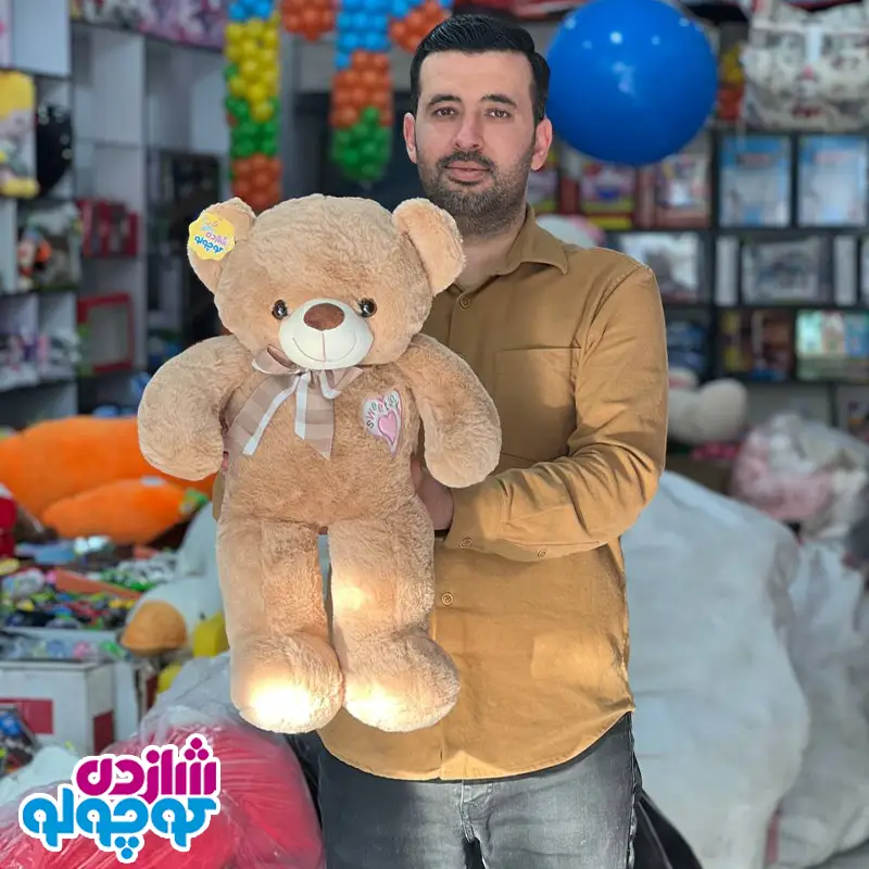 سایز خرس عروسکی به صورت ایستاده 60 سانتی متر میباشد.